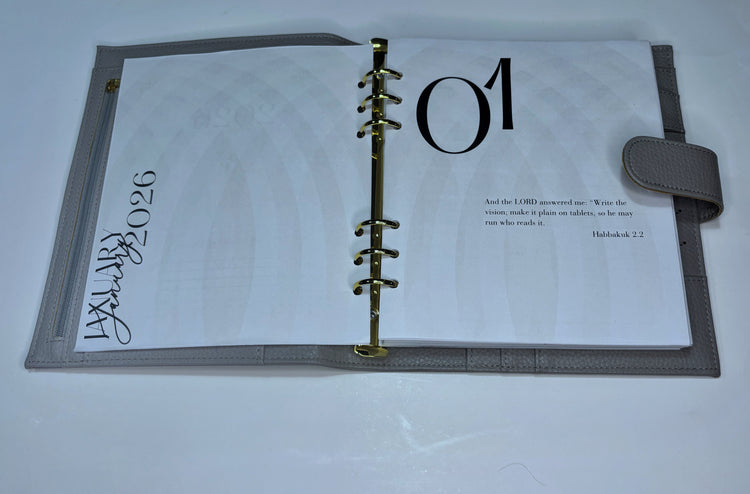 The Be Connected Collection is a minimalist planning experience designed to help you stay rooted in faith and aligned with God’s word. Featuring a clean white and grey color palette, this collection embraces a simple yet elegant style that creates space for reflection, clarity, and spiritual focus.